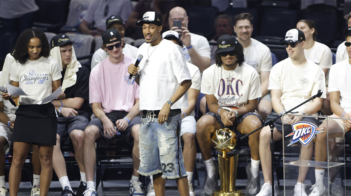 Oklahoma.i Home – Oklahoma City Thunder veteran Alex Caruso He says Aaron Viggins stole the show before celebration on Tuesday celebrations. Viggins’s speech kicked the groms of celebrated festivities at the Paycom Center before the parade starts. In special sending for owners of seasonal tickets, teams and friends and family front, Aaron’s speech was one of Caruso’s favorite moments.
