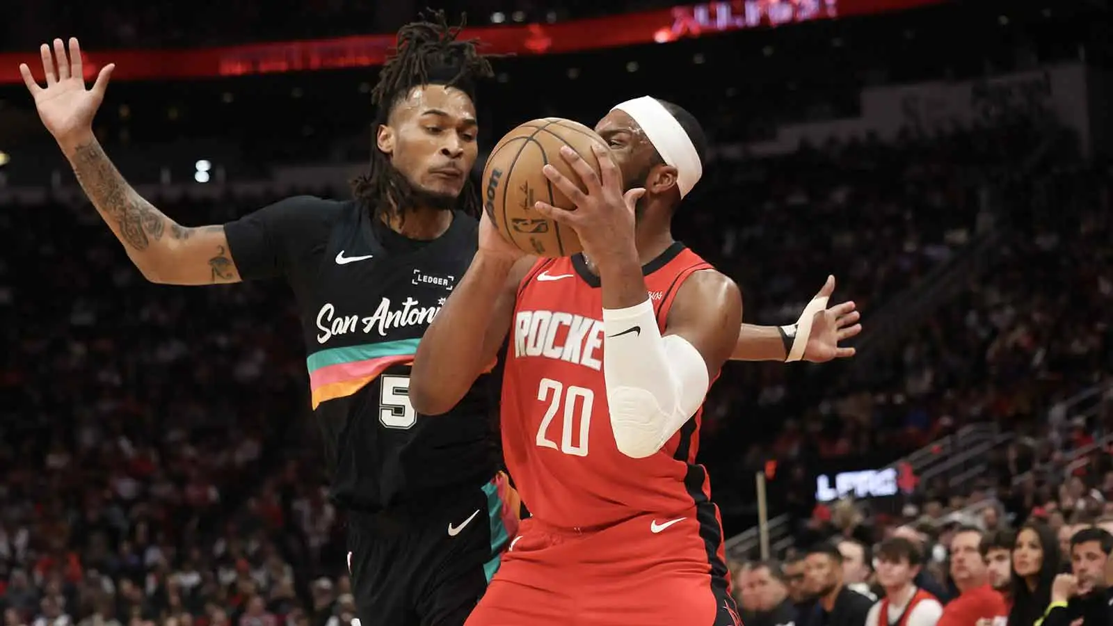 With 8:12 left in the third quarter in a game the Spurs had led for most of its duration, Castle picked off a Kevin Durant pass intended for Amen Thompson. San Antonio quickly got the ball to Castle who leaked out after deflecting the pass, and with the sophomore sensing some daylight, he decided to go for a crazy layup even as Rockets defenseman Josh Okogie sprinted back.