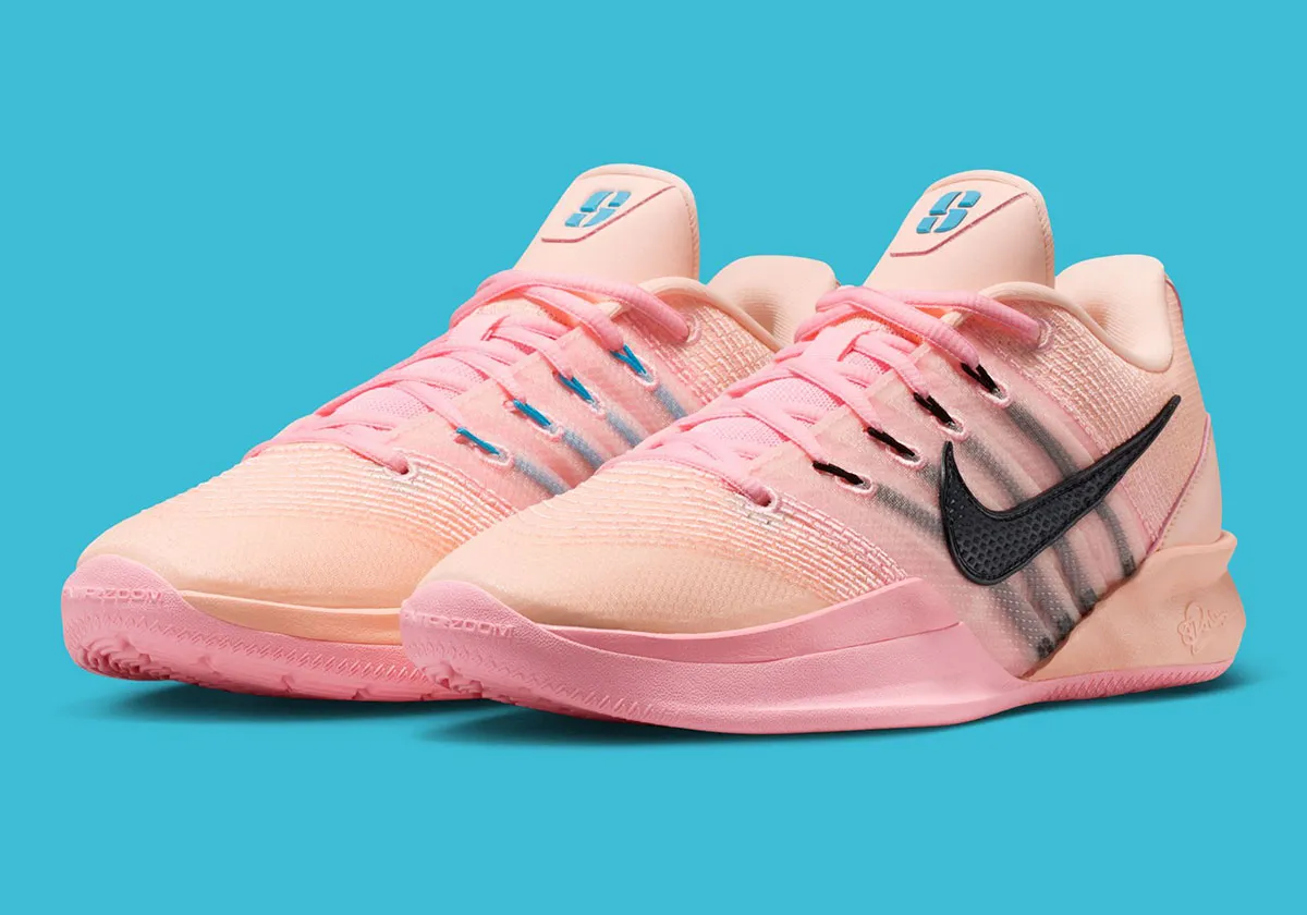It’s close Sabrina 3 «Three»the upper is dressed in a shade of salmon pink, and is highlighted by blue finishes on one side, the FliWire cables and the Swoosh, and black on the other. The player’s “S” logo appears on the tongue in blue, as does the heel tab, where we find her number 20.